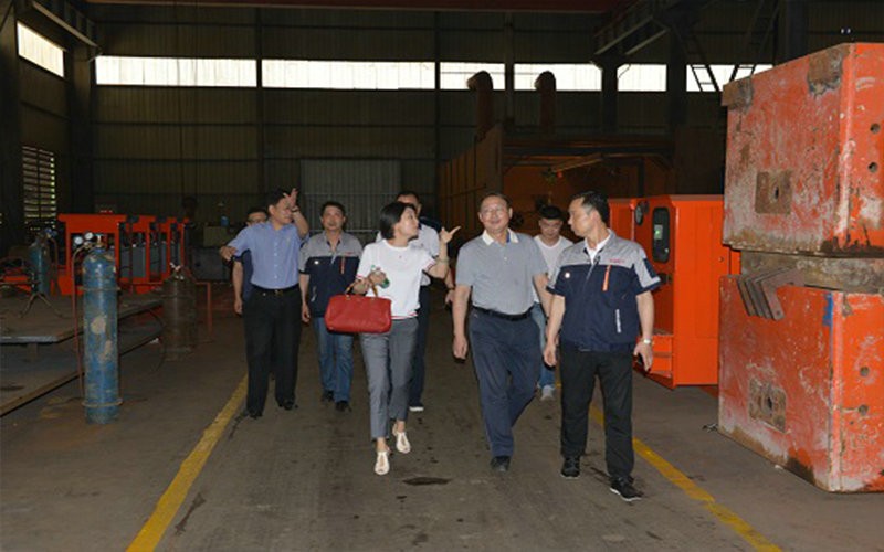 熱烈歡迎《湖南日報》社孔和平社長一行參觀礦用電機(jī)車車間。